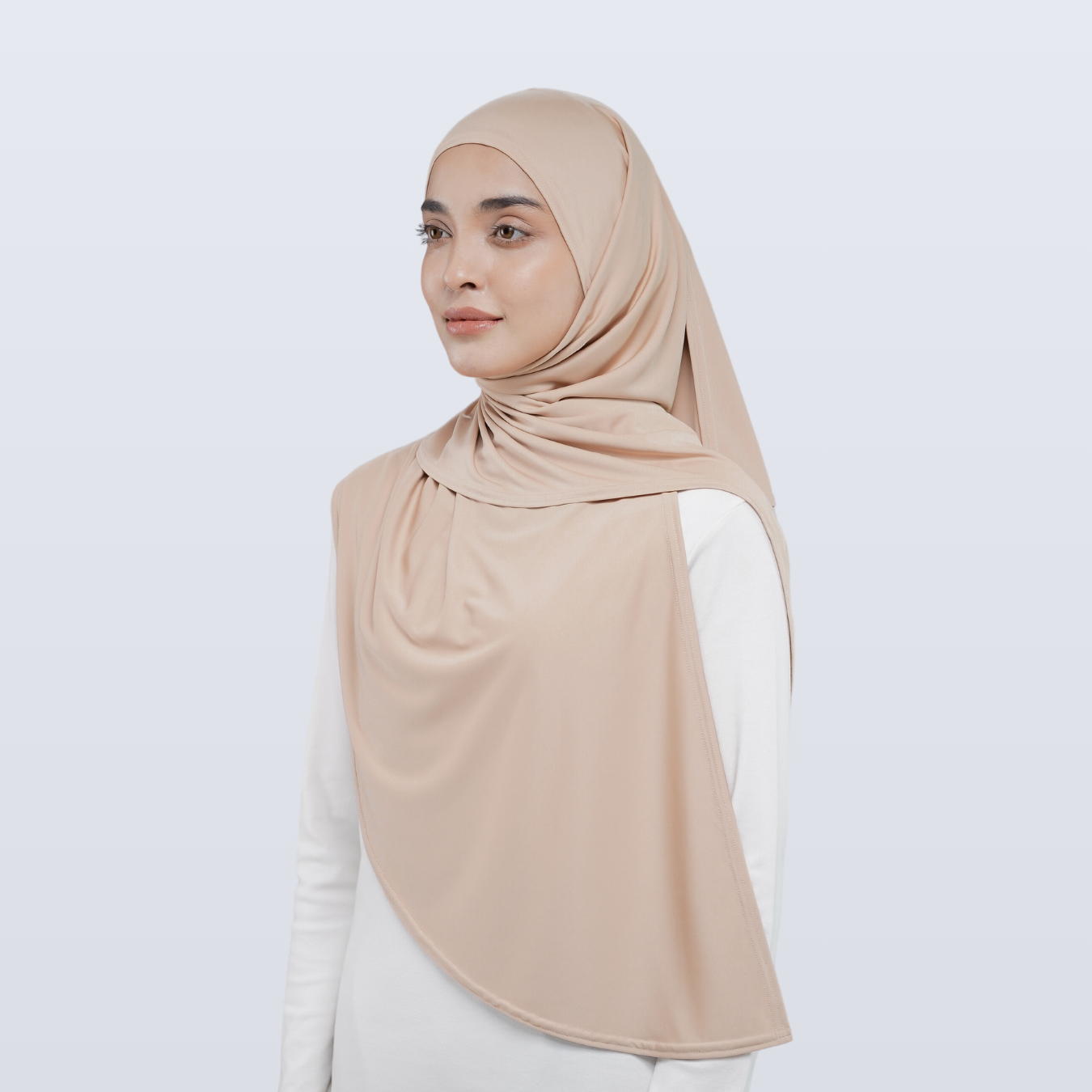 Semi instant hijab designed with lightweight and breathable fabric.